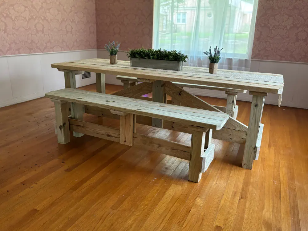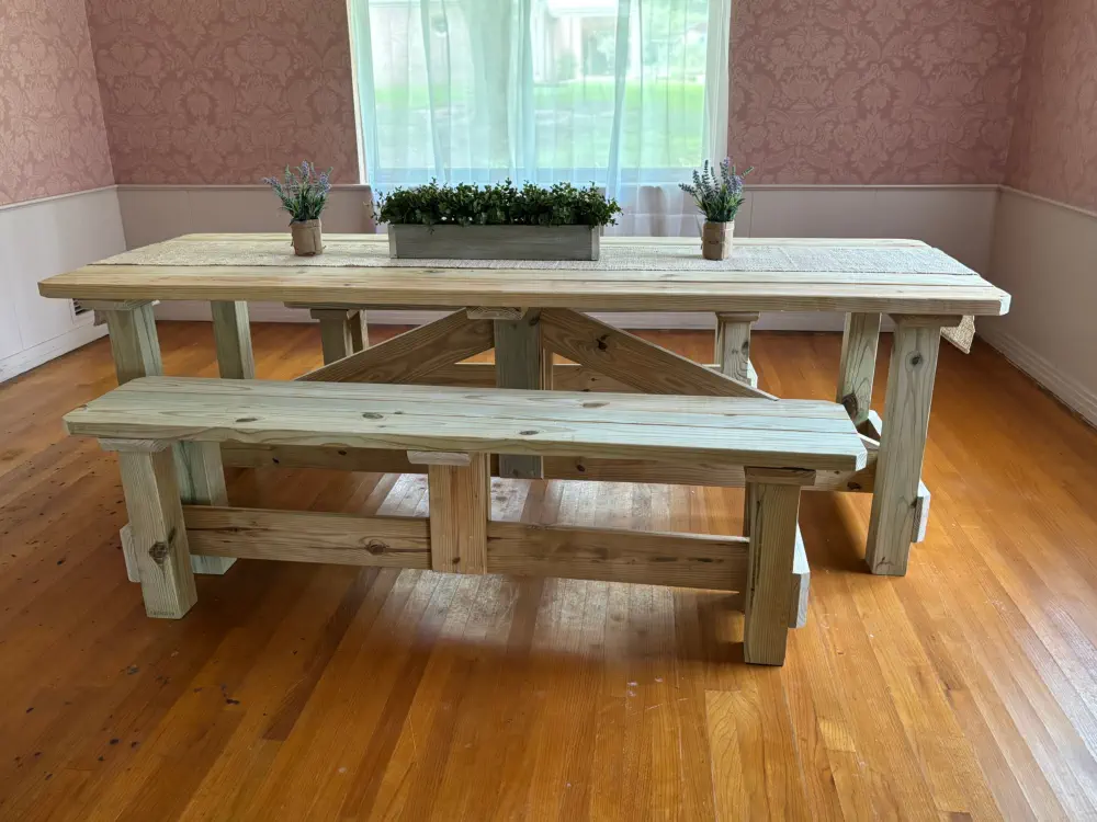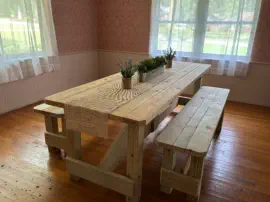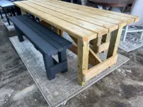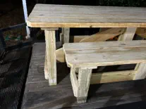 Chair sets with a table, all designed and built with care at HIS Hammer Wood Designs. Each photo